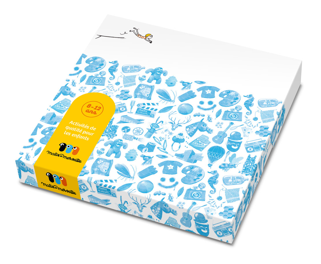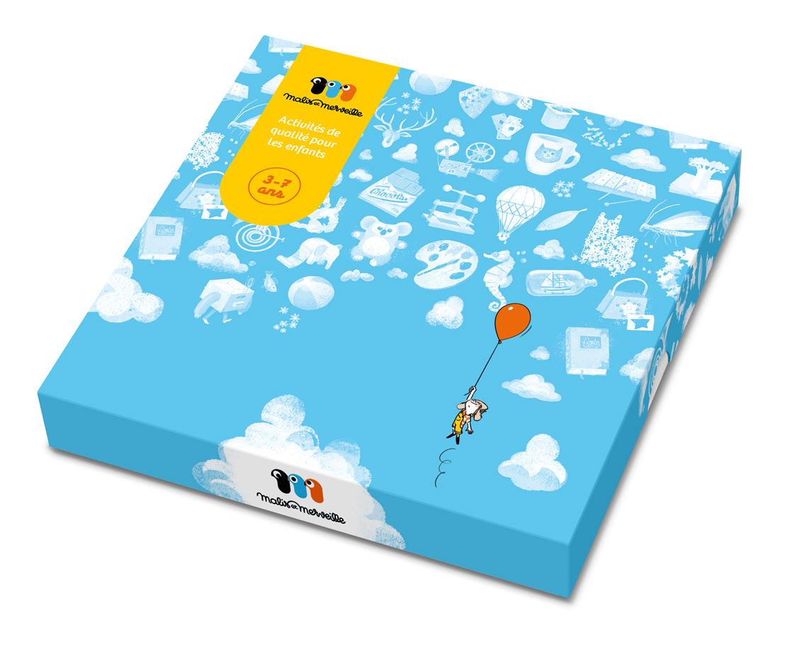 Logo, graphisme et illustrations pour les coffrets d'activités Malis et Merveille. Avec l'Atelier à propos